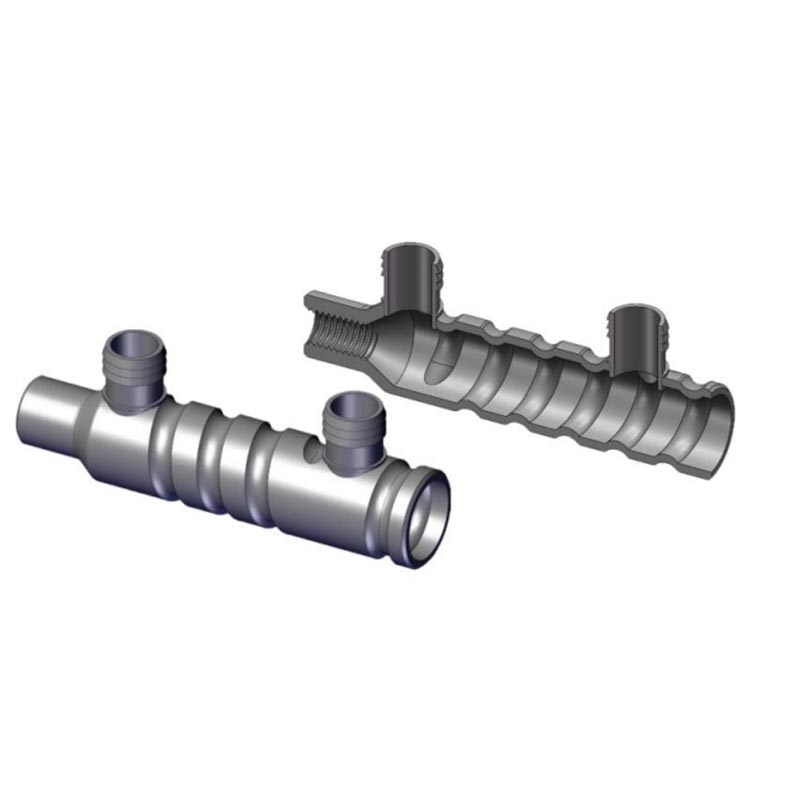 na oboch koncoch, vhodné pre obojsmerné tupé spoje výstuže; poloinjektážne objímky majú na jednej strane závitové spojenie